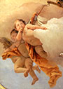 Dubbele kaart met enveloppe, detail uit het kunstwerk Geblinddoekte Cupido in een wagen, getrokken door Putti, geschilderd door Giambattista Tiepolo