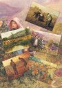 Set van 37 kunstkaarten van Frederiek Nelissen, illustraties uit 'Het wonderlijke windsel'. Op de afbeelding zijn enkele voorbeeldkaarten te zien.